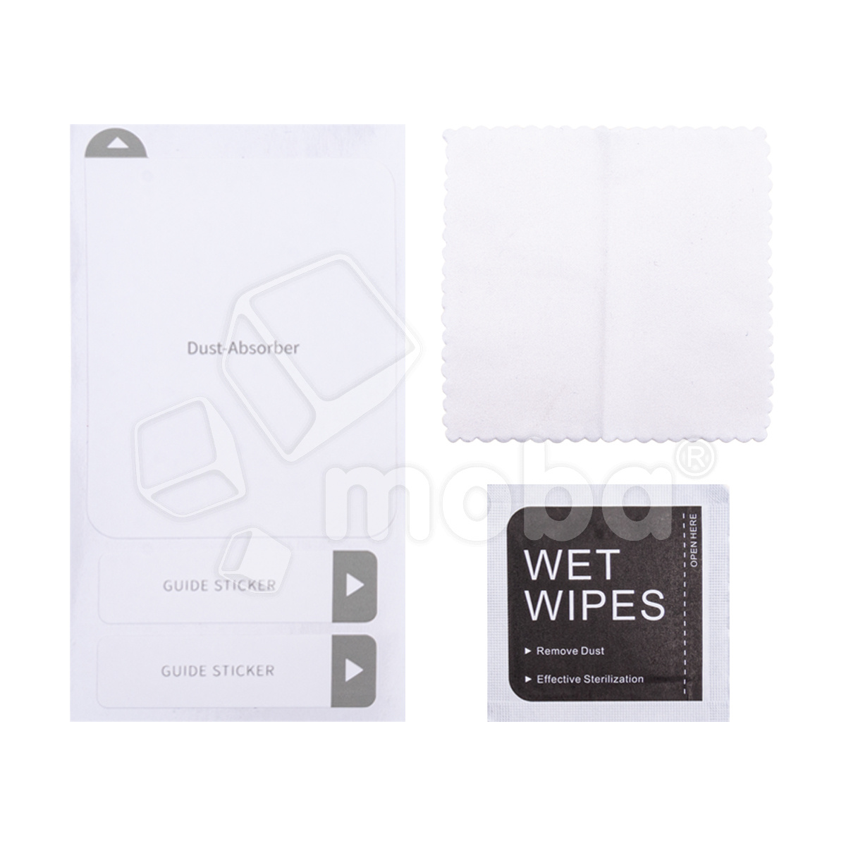 Два типа салфеток – влажная и сухая – позволяют вам тщательно очистить экран от пыли, грязи и жирных следов, а затем аккуратно удалить остатки влаги и предотвратить появление новых пятен. В комплект также включены стикеры, которые помогут вам точно приложить защитное стекло к экрану без пузырьков воздуха и складок.