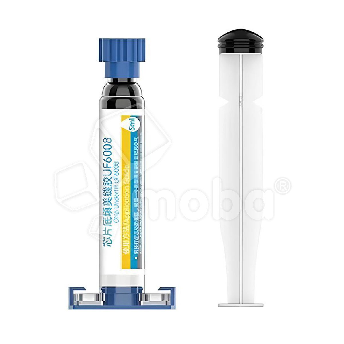 Компаунд JCID UF6008 — это специализированный клей, предназначенный для заполнения пустот в микросхемах, таких как процессоры, NAND-флеш-память и другие компоненты. Он используется в процессе ремонта SMT (Surface-Mount Technology) и BGA (Ball Grid Array) монтажа, обеспечивая дополнительную защиту и стабильность микросхем.