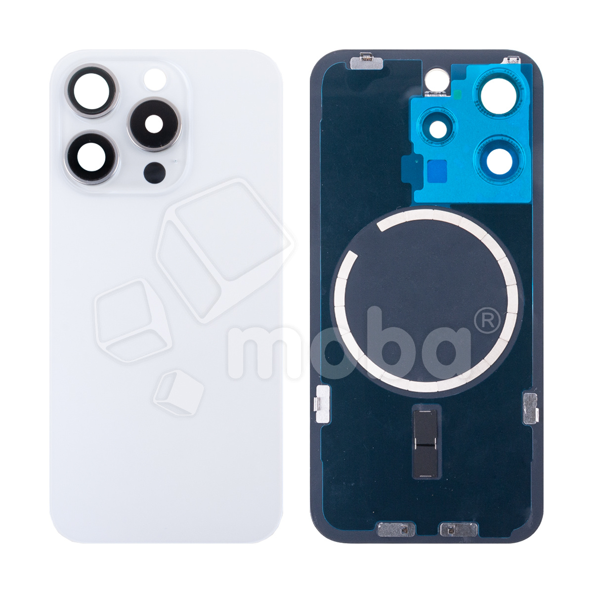 Задняя крышка для iPhone 15 Pro (A3102) в сборе со стеклом камеры Белый (стекло, монолит, MagSafe, логотип) - Премиум